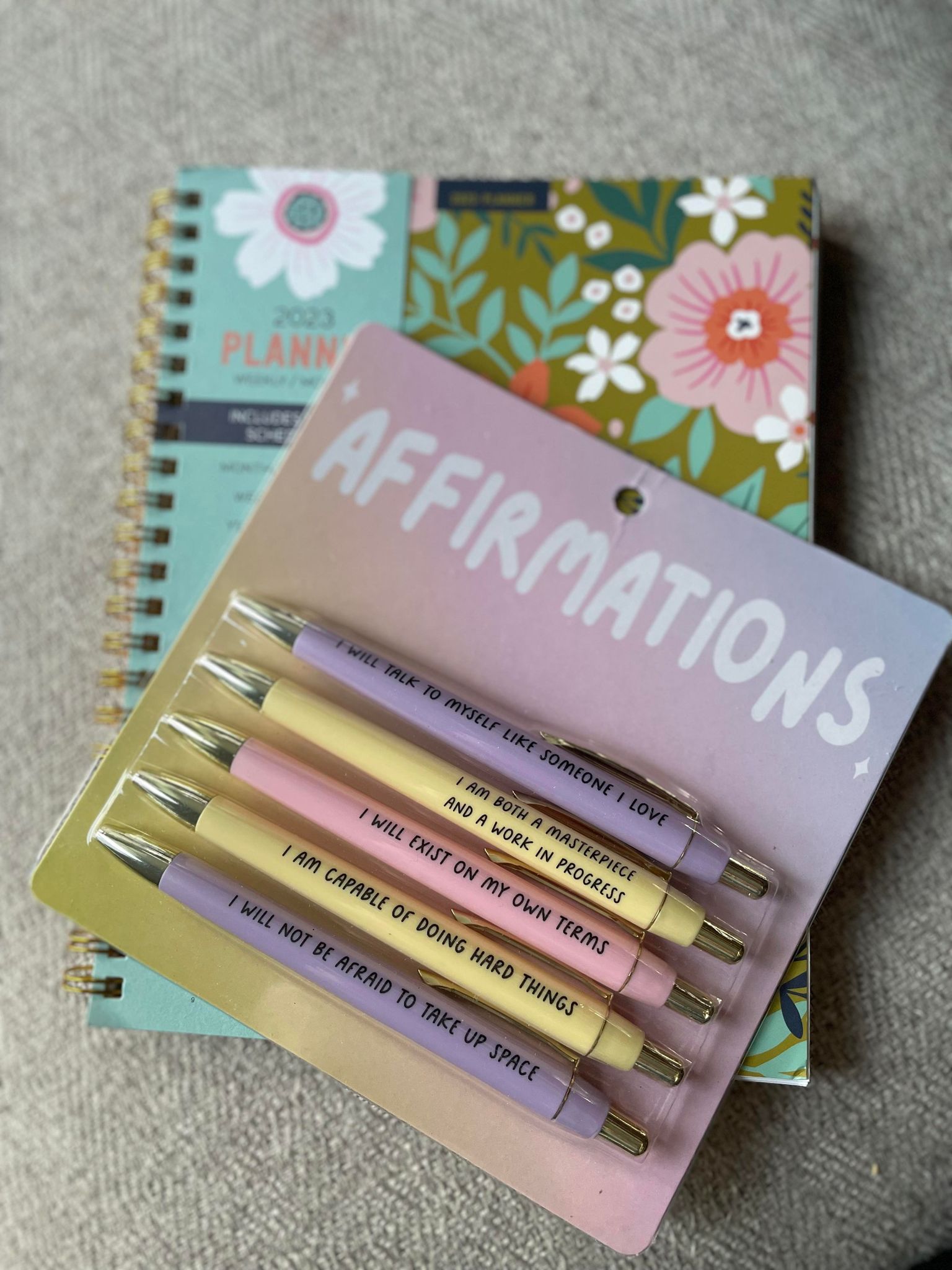 Set Includes: 8" x 6" 2023 Folk Flowers Medium Daily Weekly Monthly Planner