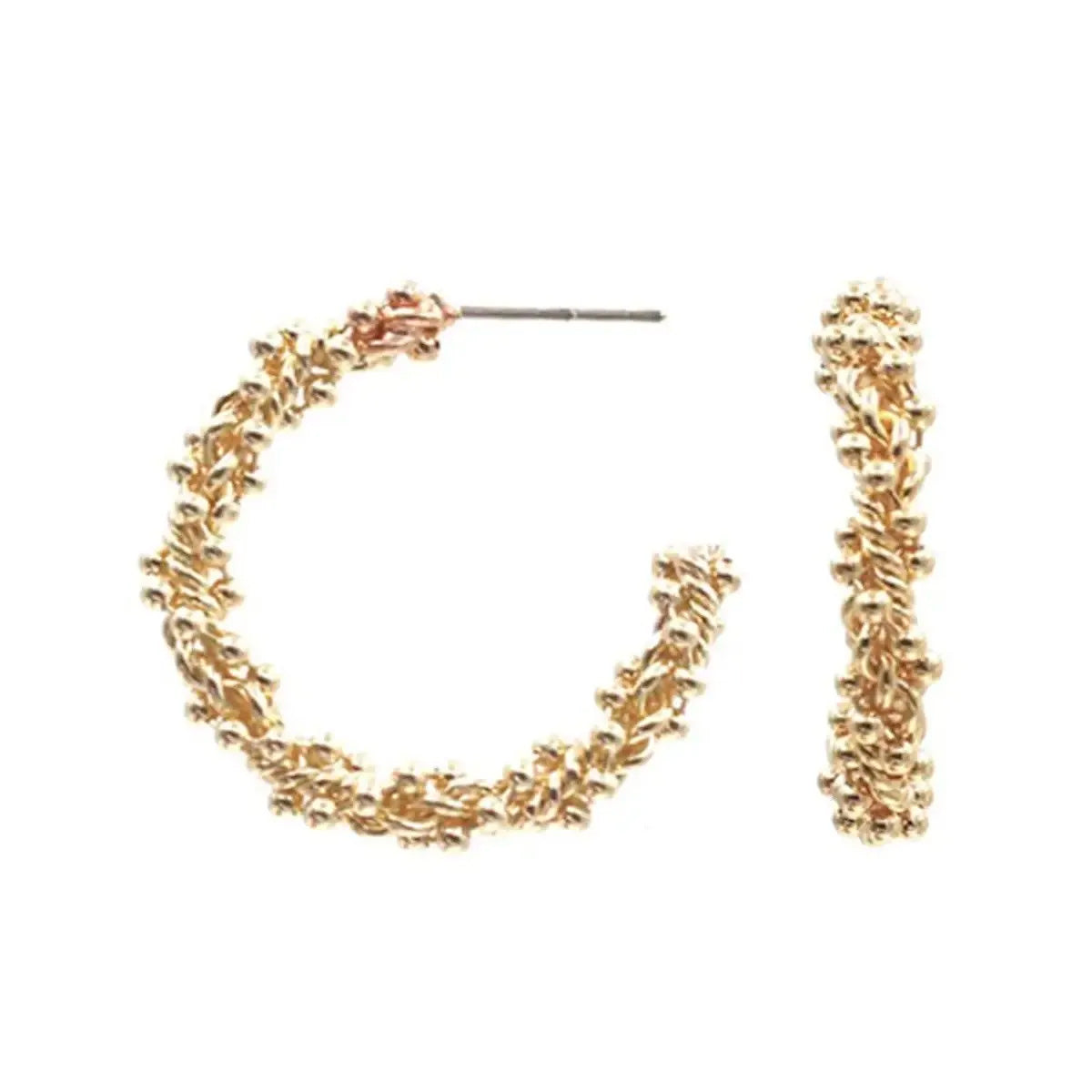 You'll reach for these hoop earrings time and time again, the classic gold color with subtle sparkle adds just the right touch of fun! 1" Open Hoop.